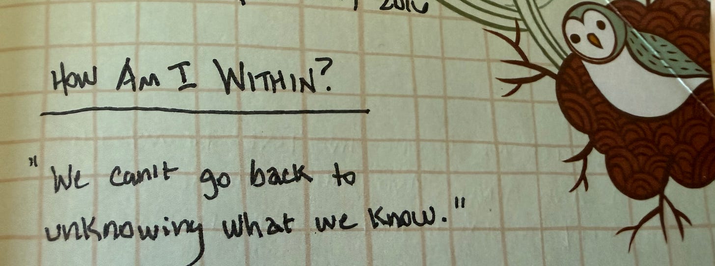 I didn’t know it at the time, but all of this work inside the warmth of that book study circle was building a protective wall around my heart that I would need someday. Because in my outside life, my relationship was turning darker and darker. By 2019, four years after I first started the owl journal, I had begun documenting the abuse and the fights in another journal because I didn’t want to bring that into my sacred space.